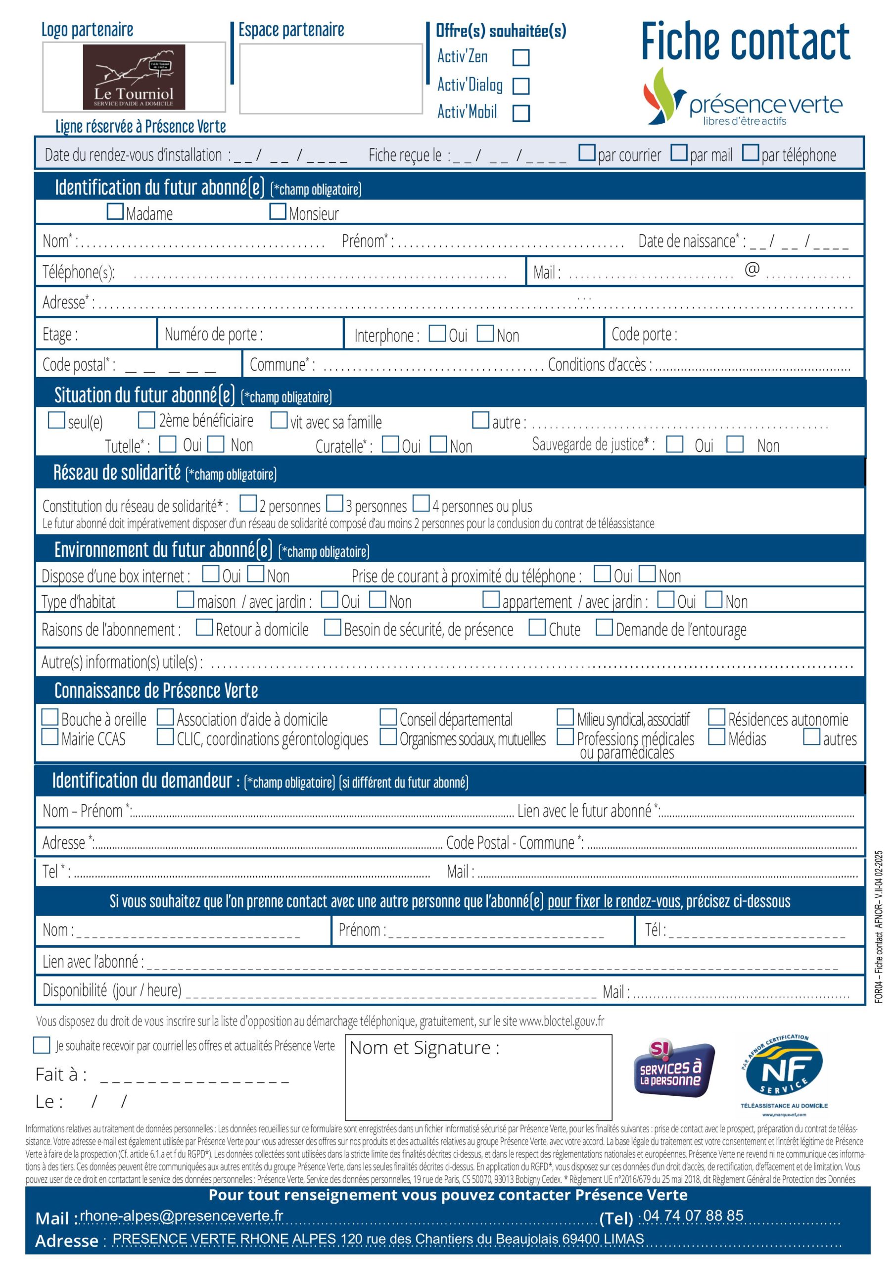 *Offre valable dans le cadre d’une convention de partenariat locale entre Le Tourniol & la résidence seniors PIC ST MICHEL et Présence Verte Rhône-Alpes. Les frais d’installation (valeur 48 € TTC) sont offerts pour toute souscription réalisée dans ce cadre.